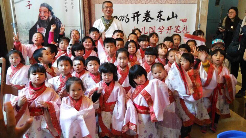 “開筆禮”是中國古代對少兒開始識字習(xí)禮形式的稱謂,俗稱“破蒙”,被稱為人生四大禮之一?;顒赢?dāng)天,50名小朋友身著漢服,共同拜祭儒家學(xué)派的創(chuàng)始人――孔子。隨后在國學(xué)老師的帶領(lǐng)下,進(jìn)行正衣冠、拜先師、朱砂啟智、寫“人”字等儀式。最后大家一同拜謝老師,合影留念。