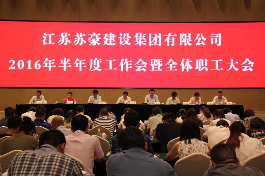 8月3日,建設集團召開2016年半年度工作會暨全體職工大會,總結上半年工作,部署下半年目標任務,并表決通過《江蘇蘇豪建設集團有限公司員工違規(guī)處分規(guī)定(試行)》。建設集團領導班子、集團本部及子公司全體員工參加會議。控股集團副總裁、建設集團黨委書記周謙出席會議并講話。孫新山總經理主持會議,并傳達控股集團上半年經濟工作會議精神。