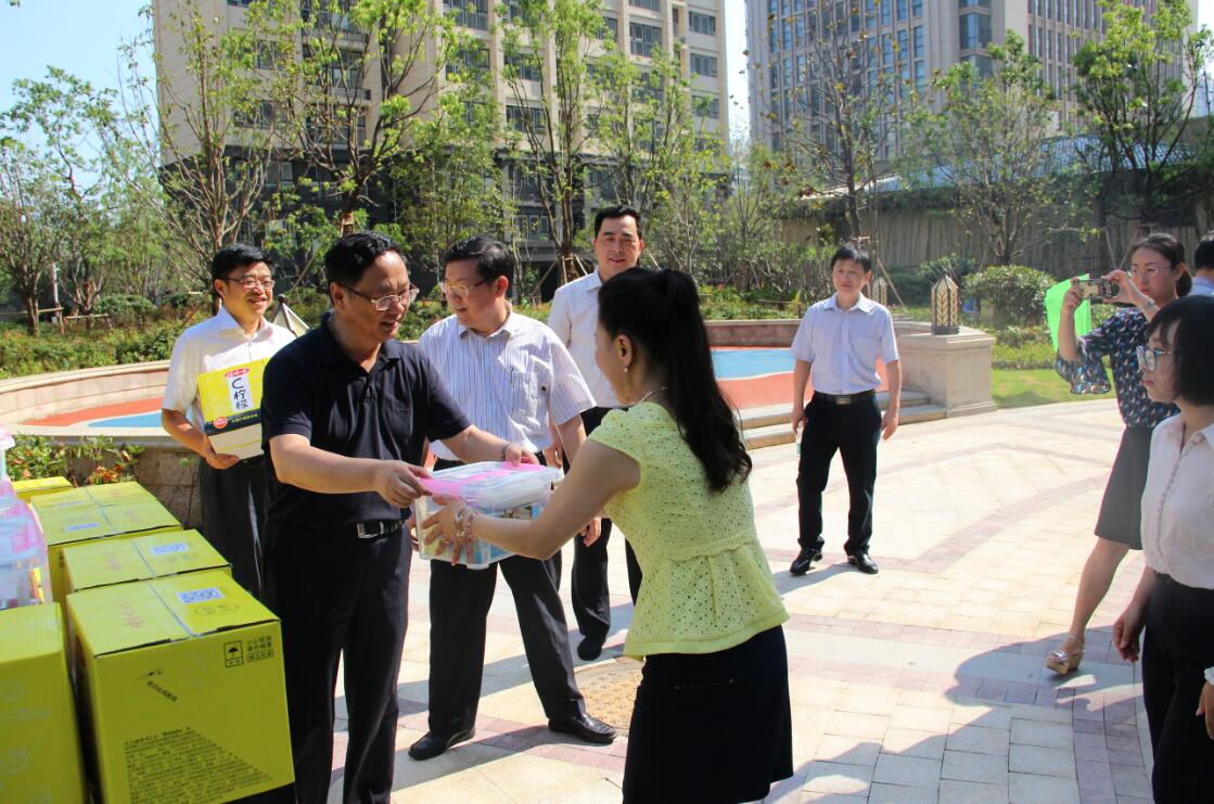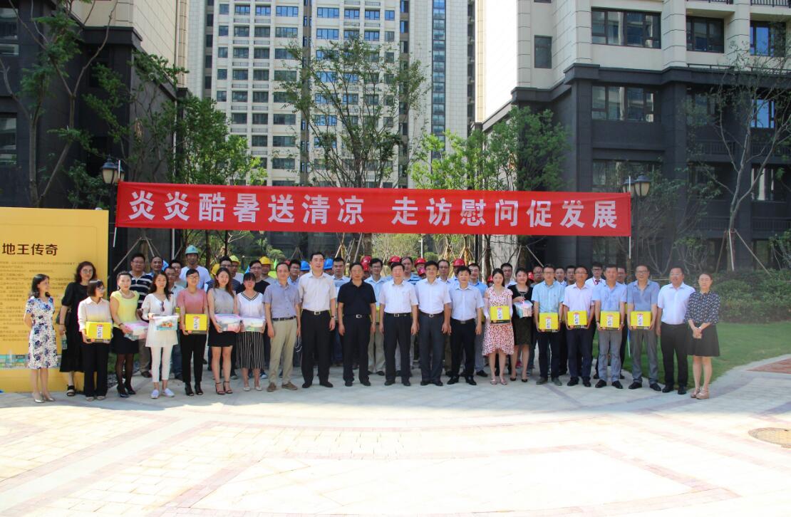 7月25日,蘇豪控股集團黨委書記、董事長王正喜、控股集團副總裁、建設(shè)集團黨委書記周謙一行冒著近四十度的高溫前往建設(shè)集團尚書云邸項目,為員工送去清涼和關(guān)愛。在“送清涼”活動中,王董事長代表集團黨委、工會為員工們贈送了防暑降溫藥品和飲料等清涼物品。慰問活動結(jié)束后,王董事長一行在項目內(nèi)進行了實地調(diào)研,并聽取了工作進展情況匯報,王正喜董事長對建設(shè)集團愛濤置業(yè)公司房地產(chǎn)開發(fā)快速高效的工作給予了充分的肯定,并向全體員工致以誠摯敬意和衷心的感謝。王董事長強調(diào),今年暑運期間溫度高,外部作業(yè)人員面臨嚴(yán)峻考驗,各部門領(lǐng)導(dǎo)、各級管理人員務(wù)必要重視防暑降溫工作,心系一線員工,合理安排員工上崗時間。在防暑降溫措施上,不僅限于送清涼,要關(guān)注重點崗位工作需求,讓廣大員工平安度過高溫季節(jié)。